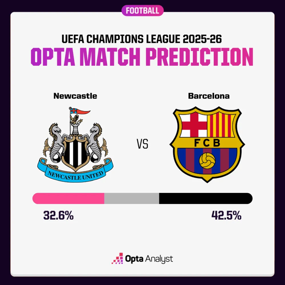 Siêu máy tính Opta dự đoán chiến thắng cho đội khách, với Barcelona thắng trong 42,5% trong số 10.000 mô phỏng trước trận. Newcastle thắng trong 32,6% mô phỏng, trong khi tỷ lệ hòa được đánh giá là 24,9%.