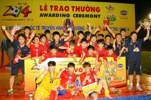 Đội bóng Sinh viên Hàn Quốc xuất sắc giành chức vô địch BTV Cup 2014. Ảnh: Hoàng Hùng