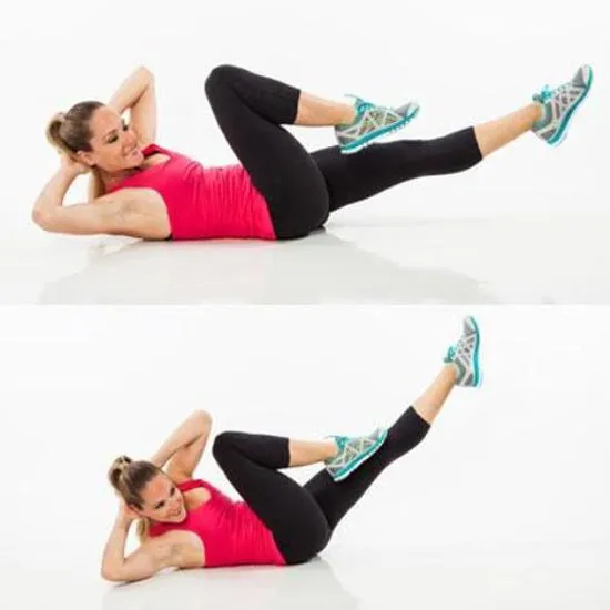 1. Nằm ngửa trên nền cứng, co chân và đạp xe tưởng tượng;