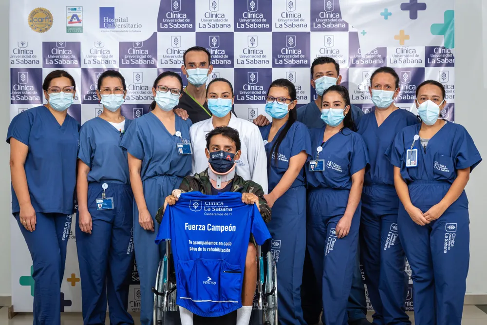 Nhà vô địch Tour de France 2019 đã phải ngồi xe lăn và đeo nẹp khi chụp hình lưu niệm với đội ngũ y bác sĩ đã chiến đấu giành giật sự sống cho anh thời gian qua. Egan Bernal nói với giới truyền thông Colombia: “Tôi thật may mắn khi gặp được đội ngũ y bác sĩ tuyệt vời như vậy. Nếu không có sự giúp đỡ của bạn (các nhân viên y tế), câu chuyện sẽ rất khác. Tôi muốn cảm ơn vì đã cho tôi cơ hội sống lần thứ hai. Sự thật là, tôi cảm thấy như mình được tái sinh”.