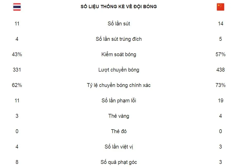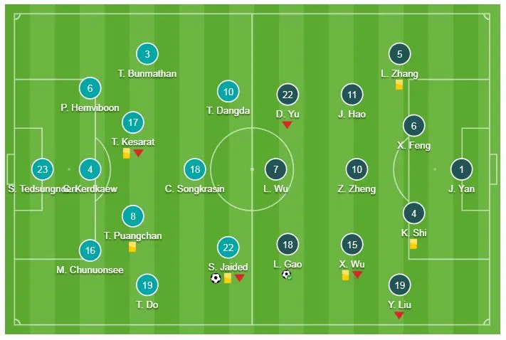 Dù bất ngờ thủng lưới trước nhưng Trung Quốc kịp lội ngược dòng thành công trong 4 phút. Nếu như Supachai giúp Thái Lan thêm hy vọng khi mở tỷ số thì sau đó Xiao Zhi và Gao Lin có 2 bàn thắng giúp Trung Quốc ngược dòng giành vé vào tứ kết Asian Cup 2019.