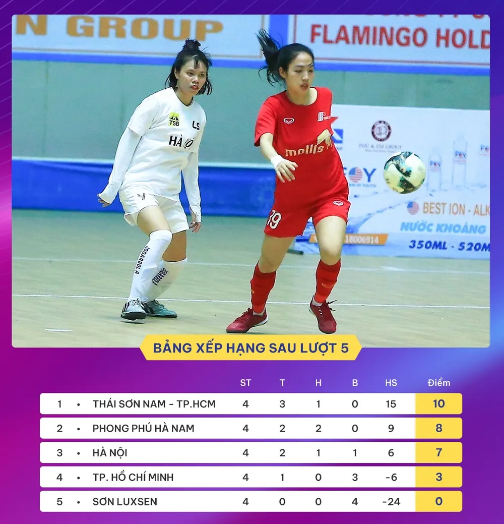 Trận đấu còn lại của vòng 5 là cuộc đọ sức giữa Phong Phú Hà Nam và đội TPHCM. Bất ngờ đã xảy ra khi Như Ý ghi bàn thắng mở tỉ số trận đấu cho các cô gái TPHCM. Dù vậy, đội bóng đến từ thành phố mang tên Bác không duy trì được lợi thế quá lâu và để thua ngược với tỷ số 1-4 chung cuộc.