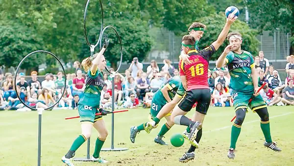 Những ai đọc bộ truyện Harry Potter của nhà văn J.K. Rowling chắc chắn chẳng lạ gì môn Quidditch của các học sinh trường Hogwarts. Giờ nó đã xuất hiện ở ngoài đời. Đương nhiên, những người chơi không thể cưỡi chổi bay trên không như các nhân vật trong truyện. Người chơi cũng có chổi, cũng phải ngồi lên nó, không được bỏ ra trong suốt trận đấu, và phải chạy chứ không bay.