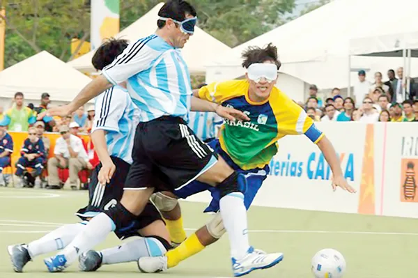 Trong môn thể thao này, các cầu thủ đều phải đeo một dải băng bịt mắt, ngoại trừ thủ môn. Một điểm đặc biệt nữa là quả bóng sẽ được biến đổi bằng cách thêm một vài vật tạo tiếng động vào bên trong ruột giúp các cầu thủ có khả năng định vị, tương tự như những gì mà cầu thủ khiếm thị thể hiện trong các trận đấu.