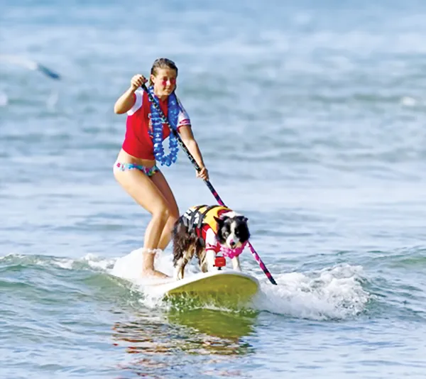 Cuộc thi lướt sóng cùng chó được tổ chức thường niên ở các bãi biển lớn của Mỹ như Del Mar, Imperial ở bang California và Jupiter ở bang Florida. Điểm số trong môn thể thao này được tính bằng khả năng phối hợp giữa chú chó và chủ nhân và độ đẹp mắt của những động tác biểu diễn.