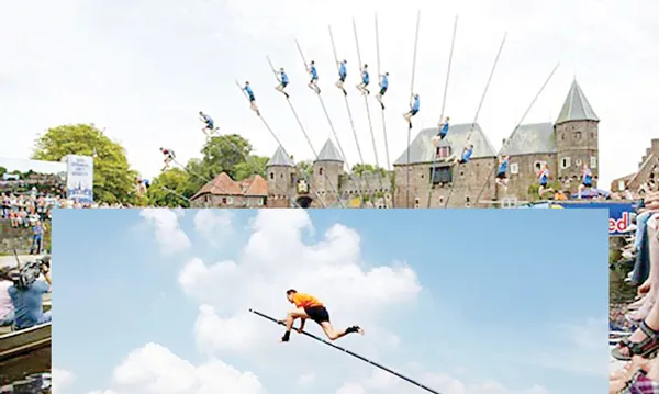 Nhảy sào qua mương có xuất xứ tại Hà Lan. Điều đặc biệt ở môn thể thao này là người chơi phải leo lên những cây sào cắm sẵn và vượt qua con mương với khoảng cách xa nhất có thể. Chiến thắng sẽ dành cho người tiếp đất thành công ở bãi cát, khi vượt qua làn nước ngăn cách.