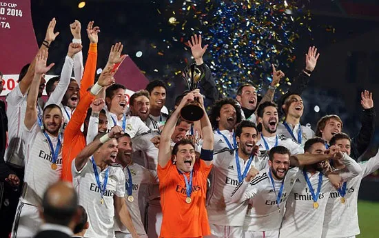 Iker Casillas nâng cúp sau khi đăng quang ở Fifa Club World Cup.