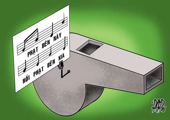 Nhưng hỡi ơi, vấn đề vua sân cỏ vẫn cứ nóng lên. Gần nhất là tại vòng 1/16 cúp Quốc gia ở trận HA.GL – SHB Đà Nẵng, qua theo dõi, bọn cháu thấy người điều khiển trận đấu đã mắc nhiều sai sót. Khi hiệp 1 gần kết thúc, Văn Thanh (HAGL) đá phạt trực tiếp bóng bay vào vùng cấm thì Merlo (SHB Đà Nẵng) dùng tay cản bóng nhưng trọng tài không thổi phạt đền. Vì bức xúc, một thành viên của HA.GL phản ứng dữ dội và với lỗi này, đáng ra ông ta bị đuổi lên khán đài nhưng trọng tại lại cho qua. Tiếp đó, trọng tài chính rút thẻ vàng thứ hai trút quyền thi đấu với Đức Lễ (SHB Đà Nẵng) khi cầu thủ này chơi bóng cao chân nhưng không ác ý. Người am hiểu biết rằng trọng tài đang “gỡ gạc” cho HA.GL.