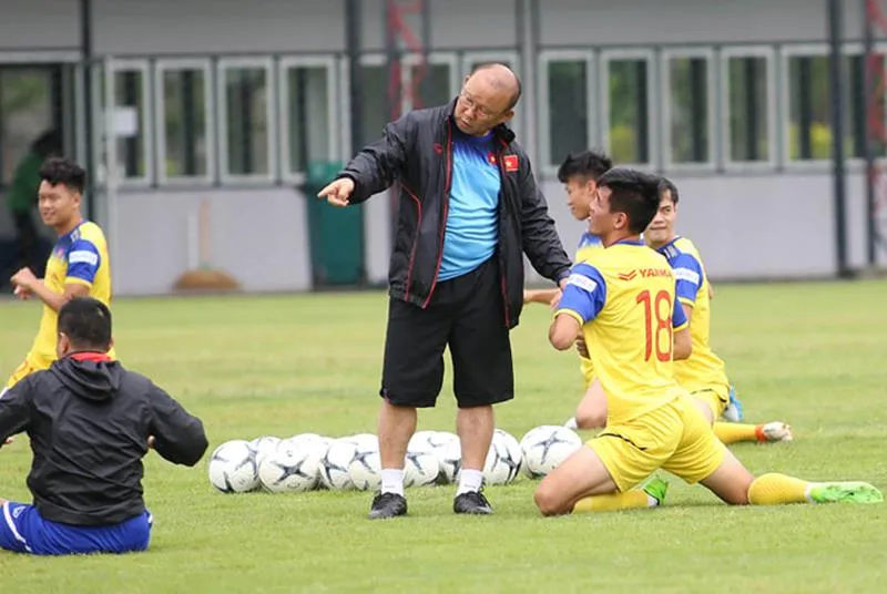 HLV Park Hang-seo và các học trò nỗ lực tập luyện. Ảnh: MINH HOÀNG