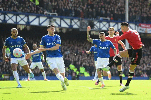 Bước sang hiệp 2, thế trận không sáng sủa hơn với đội khách khi Everton chơi phòng ngự chặt chẽ. Tuyến giữa đông đúc khiến Manchester United chỉ có thể lên bóng từ biên. Sức ép của đội khách không đủ lớn để khuất phục hàng thủ đội bóng áo xanh được tổ chức rất kỷ luật. Trong vòng cấm, Cristiano Ronaldo hoàn toàn lạc lõng ngóng chờ các cơ hội. Dù tăng cường Anthony Elanga và Juan Mata nhưng hàng công Quỷ đỏ không khởi sắc thêm. Cơ hội rõ ràng nhất của Man United đến ở phút 90+3, Ronaldo có cú sút cận thành ở vòng 5m50 nhưng bị Pickford cản phá xuất thần.