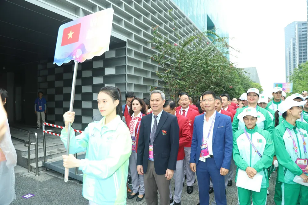 Đoàn thể thao Việt Nam dự lễ thượng cờ trong sáng 22-9 tại Hàng Châu (Trung Quốc). Ảnh: ĐOÀNTTVN