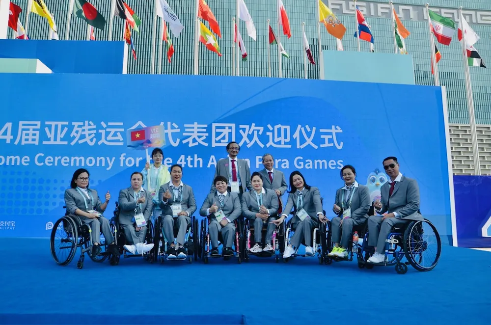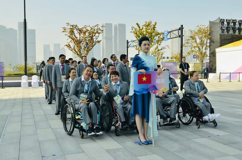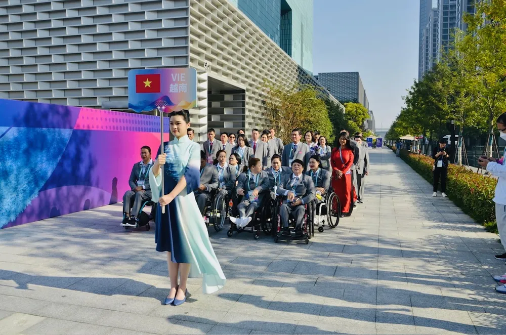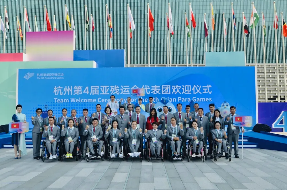 Lễ thượng cờ dành cho Đoàn thể thao người khuyết tật Việt Nam tại ASIAN Para Games 2023 được ban tổ chức thực hiện sáng 19-10 trong khu vực thượng cờ tại Làng VĐV của Đại hội. Quốc kì cờ đỏ sao vàng của Việt Nam được thực hiện thượng cờ đúng nghi thức trang trọng nhất qua đó đánh dấu sự có mặt chính thức của Đoàn thể thao người khuyết tật Việt Nam tại ASIAN Para Games 2023.