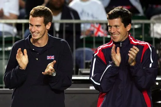 Tim Henman (phải) và Andy Murray khi còn sát cánh cùng nhau, đại diện cho màu áo tuyển Anh ở đấu trường Davis Cup.