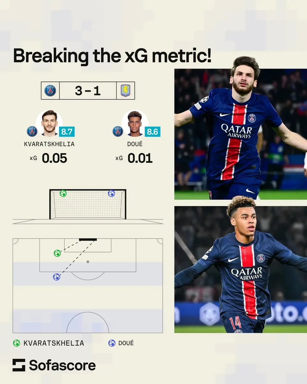 Và trung tâm của tất cả là Desire Doue 19 tuổi xuất sắc và thiên tài người Gruzia, Khvicha Kvaratskhelia, những người đã ghi những bàn thắng ngoạn mục ở hai bên giờ nghỉ để lật ngược thế trận sau khi Morgan Rogers bất ngờ đưa Villa vượt lên dẫn trước ở phút 35. Đó là minh chứng cho tinh thần chiến đấu của Villa, cùng với sự xuất sắc của thủ môn Emiliano Martinez, rằng phải đến tận phút bù giờ, Nuno Mendes mới mang lại lợi thế xứng đáng cho đội bóng của Luis Enrique, một lợi thế có thể mang tính quyết định trước trận lượt về tại Villa Park.