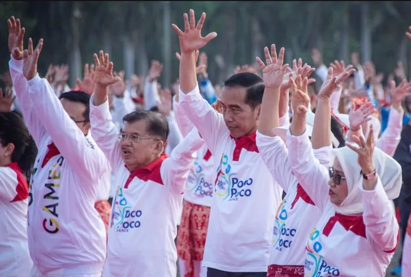 Trong trang phục trắng đỏ - giống màu cờ của Indonesia, Tổng thống Joko Widodo cùng phu nhân Iriana và một số quan chức cấp cao dẫn đầu hàng chục nghìn người nhảy điệu poco-poco, xuyên qua thủ đô Jakarta. Thêm vào đó, buổi biểu diễn còn có thêm lực lượng cảnh sát, quân đội, thành viên của quốc hội, sinh viên và thành viên của các trung tâm thể dục.