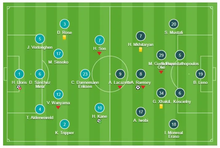 Các pháo thủ của HLV Unai Emery sớm có bàn thắng mở tỷ số do công Aaron Ramsey. Phút 74 Harry Kane mới gỡ hòa từ chấm 11m, Aubameyang không thắng thủ thành Lloris trên chấm 11m, cuối trận Lucas Torreira nhận thẻ đỏ vô duyên. Hòa 1-1, Tottenham (61 điểm, hạng 3) và Arsenal (57 điểm, hạng 4) giậm chân tại chỗ trên BXH.