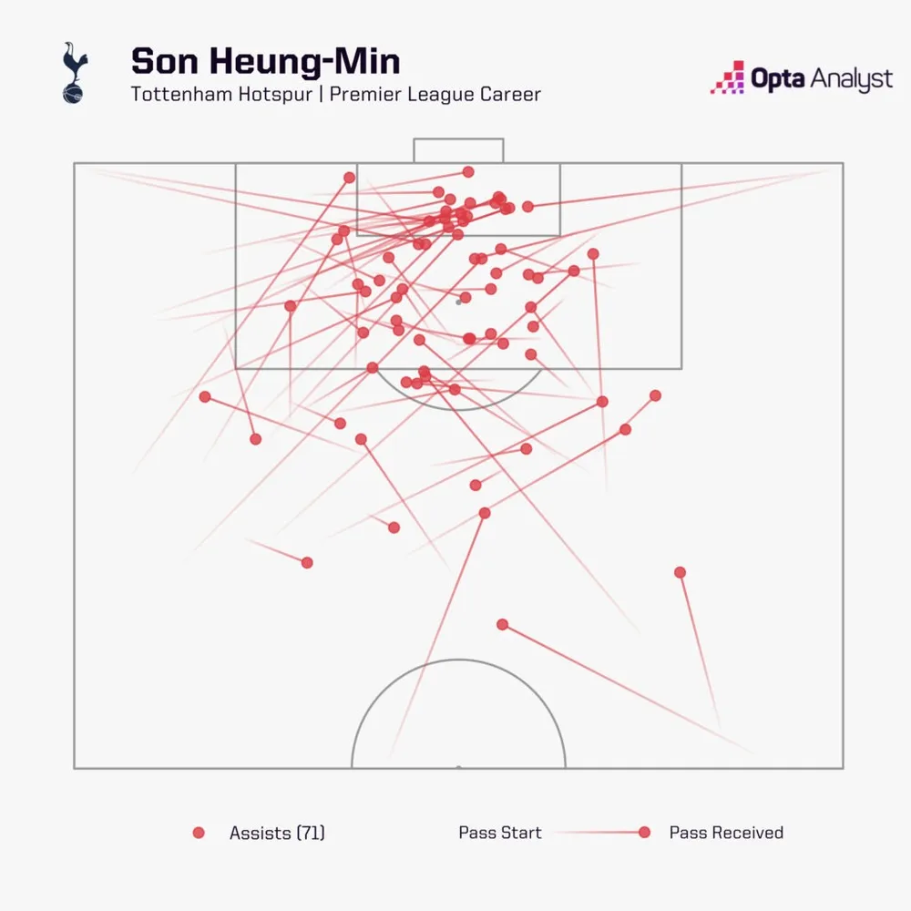 Son là cầu thủ ghi bàn nhiều thứ năm trong lịch sử Tottenham với 173 bàn, chỉ kém Martin Chivers (174) ở vị trí thứ tư một bàn. Nếu ở lại, anh gần như chắc chắn sẽ vượt lên (dù vị trí thứ ba của Bobby Smith với 208 bàn có lẽ ngoài tầm với). “Huyền thoại câu lạc bộ” dường như chưa đủ để mô tả anh. Son đứng thứ 16 trong danh sách ghi bàn mọi thời đại tại Premier League với 127 bàn và thứ 17 về kiến tạo với 71. Anh ghi ít nhất 10 bàn trong 8 mùa liên tiếp từ 2016-17 đến 2023-24, đồng thời có ít nhất 6 kiến tạo.