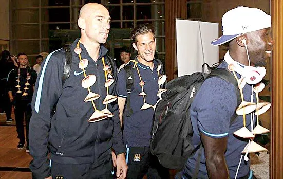 Chiều tối 25-7, chuyên cơ đưa CLB Man.City đã hạ cánh xuống sân bay Nội Bài. Có khoảng 300 cổ động viên Man.City trong trang phục màu xanh nhạt (màu áo truyền thống của Man.City) đã có mặt tại sảnh VIP A của sân bay Nội Bài để đón các thần tượng của mình, trực tiếp thấy sự hiện diện của những ngôi sao bóng đá như David Silva, Raheem Sterling, Joe Hart, Bacary Sagna... Sau khi hoàn tất thủ tục nhập cảnh và vẫy chào các cổ động viên, các tuyển thủ Man.City đã lên xe rời sân bay, di chuyển về khách sạn Marriot, nơi đội đóng quân trong thời gian ở Việt Nam.