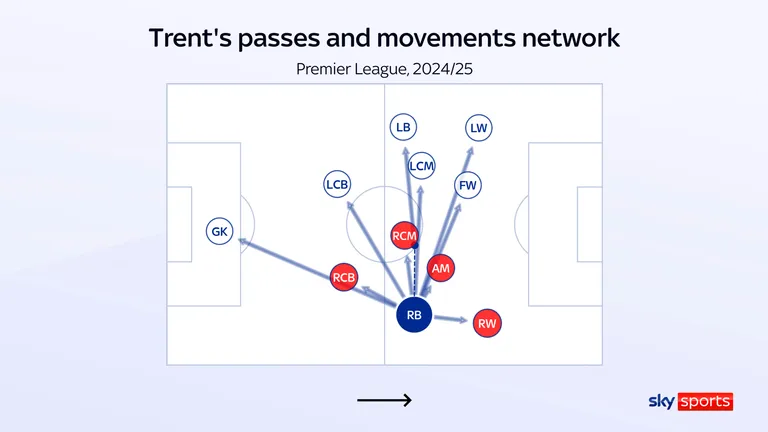 Alexander-Arnold thường hoạt động ở khu vực sâu hơn so với những cầu thủ này, dù được phép di chuyển vào trong, nhưng không ai giỏi hơn anh trong việc đưa bóng vào vòng cấm đối phương. Tổng cộng, anh đã thực hiện 2.593 đường chuyền vào vòng cấm kể từ khi ra mắt Premier League, nhiều nhất trong số các cầu thủ và là một ví dụ khác về quy mô đáng kinh ngạc của tầm ảnh hưởng tấn công của anh.