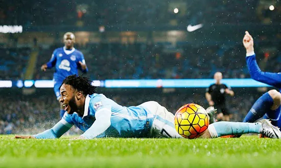 Tiền vệ Raheem Sterling bị trung vệ John Stones của Everton đốn ngã ở trận đấu hồi giữa tuần nhưng trọng tài lại không cho Manchester City hưởng penalty. Do đó, đội bóng của HLV Manuel Pellegrini đành chấp nhận trận hòa không bàn thắng.