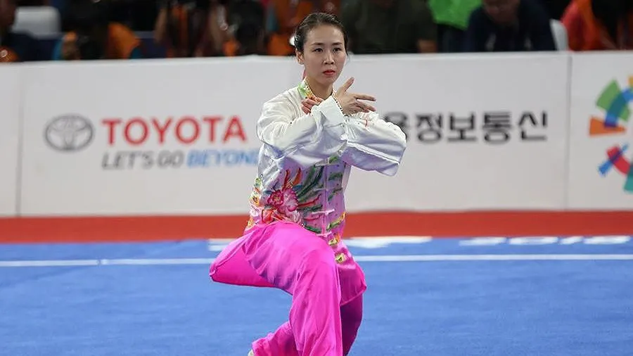 Võ sĩ Trần Thị Khánh Ly thi đấu nội dung Thái cực quyền nữ.