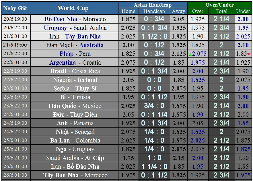 Tỷ lệ trên thị trường đã thay đổi nhiều so với 12 giờ trước. Xin cập nhật bản lịch thi đấu lúc 17 giờ chiều nay.