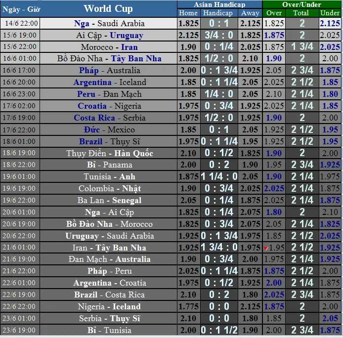 Tỷ lệ trận đấu trên thị trường thay đổi theo từng ngày. Hãy cùng theo dõi những biến động trong LỊCH THI ĐẤU được cập nhật mỗi ngày.