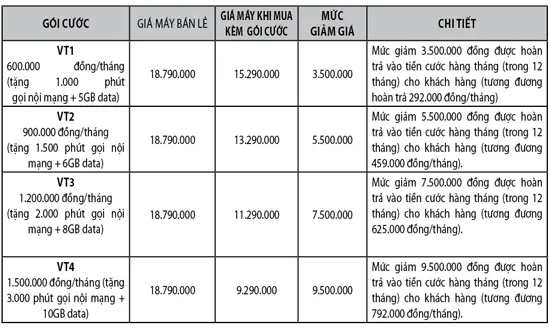 Năm nay, Viettel triển khai chương trình hỗ trợ giá máy cho bộ đôi siêu phẩm này với mức giảm giá tới 9,5 triệu đồng so với giá bán lẻ. Chương trình được áp dụng cho khách hàng hòa mạng Viettel trả sau mới, hoặc chuyển đổi từ thuê bao trả trước Viettel sang trả sau. Bảng giá chi tiết áp dụng cho iPhone7 phiên bản 32Gb theo hình thức hỗ trợ giá (ĐVT: đồng) như sau: