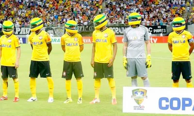 Trong đó ấn tượng nhất là trong một trận đấu tại giải vô địch Brazil - 11 cầu thủ Corinthians ra sân cùng với chiếc nón bảo hiểm màu vàng (ảnh). Đấy là chiếc nón mà Senna vẫn thường đội khi đua F1 trước khi tử nạn ngay trên đường đua Imola (Italia) vào ngày 1-5-1994.