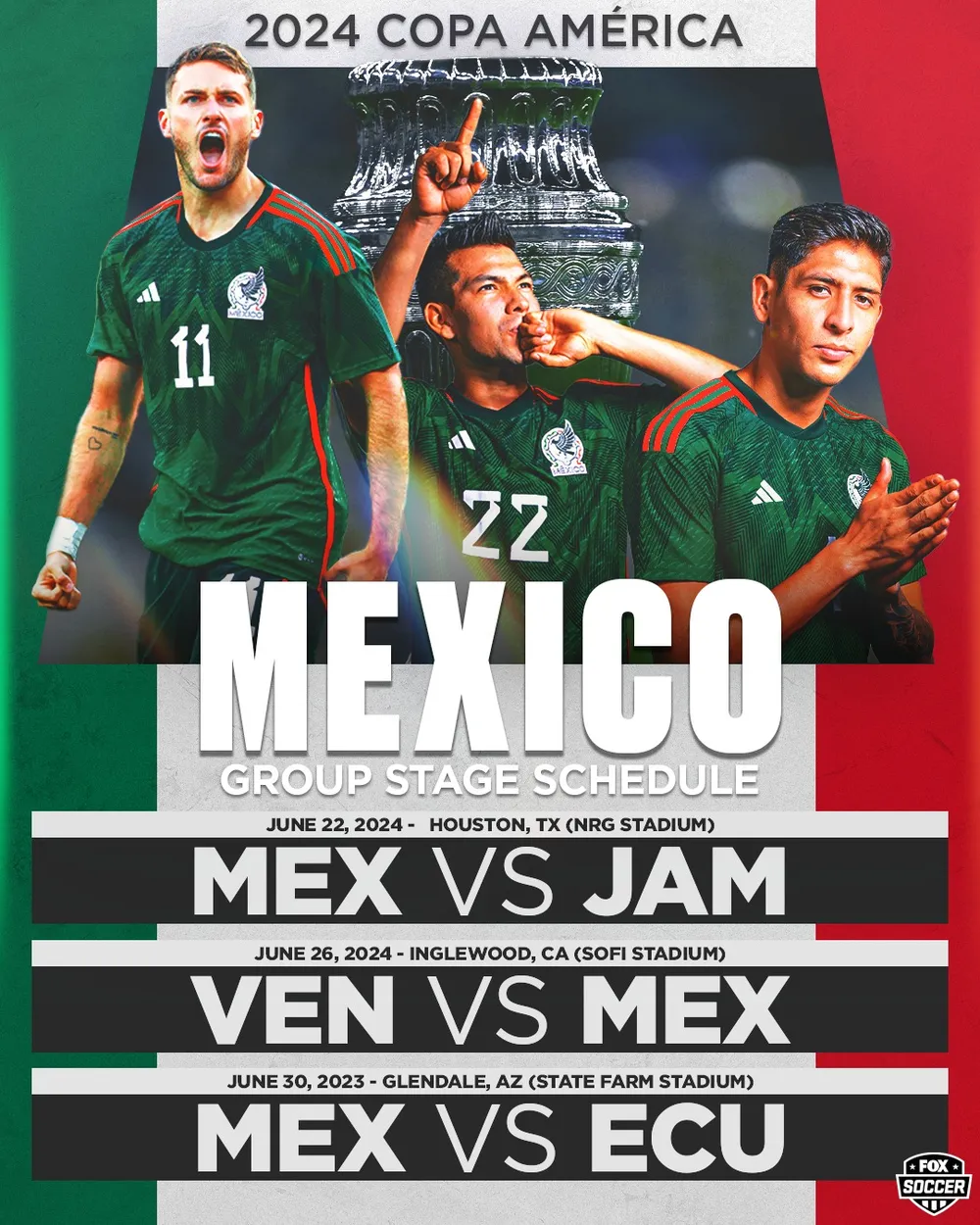 Đơn cử như thủ môn huyền thoại Gullermo Ochoa, "găng tay vàng" của El Tri tại những kỳ World Cup. Bên cạnh chân sút kỳ cựu Raul Jimenez (Fulham) và cựu vô địch Italia Hirving Lozano (PSV). Bộ ba này từng được truyền thông phương Tây kỳ vọng sẽ chơi giải đấu cuối cùng trong màu áo quốc gia tại Hoa Kỳ, nhưng điều đó không xảy ra.