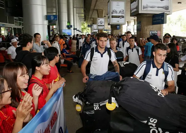 Đội U.20 Argentina tại sân bay Tân Sơn Nhất trưa 8-5. Ảnh: DŨNG PHƯƠNG