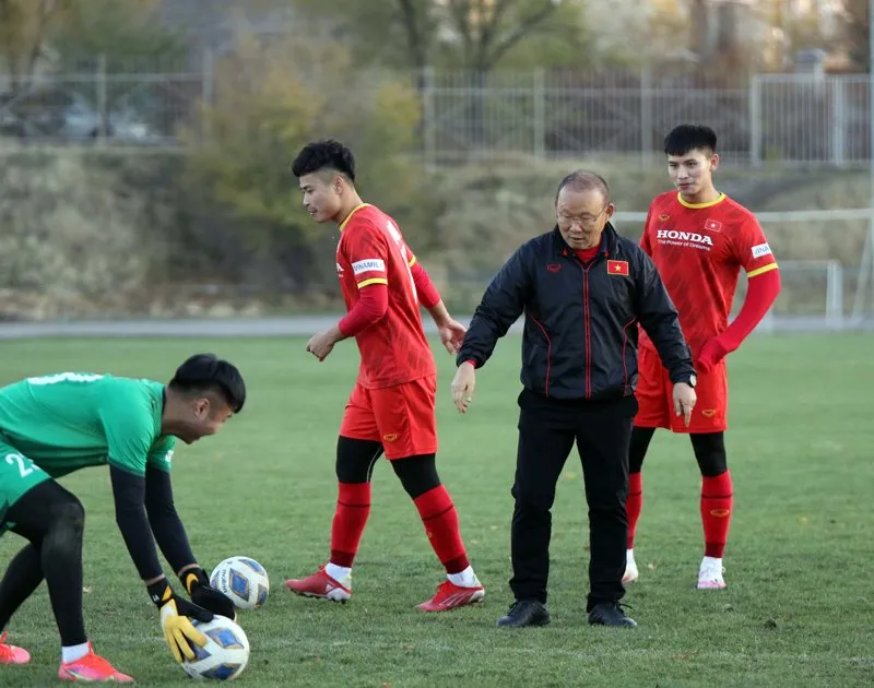 HLV Park Hang-seo trao đổi cùng đại diện cầu thủ hai đội áo đỏ và áo tím để phổ biến một số vấn đề trước trận đấu. Một trong những yêu cầu được đặt ra là tránh tối đa những tranh chấp quyết liệt để tránh chấn thương.
