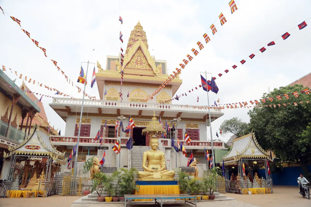 Các tuyển thủ U22 Việt Nam thăm quan ngôi chùa nổi tiếng Wat Ounalom ở thủ đo Phnom Penh. ẢNH: NHẬT ĐOÀN