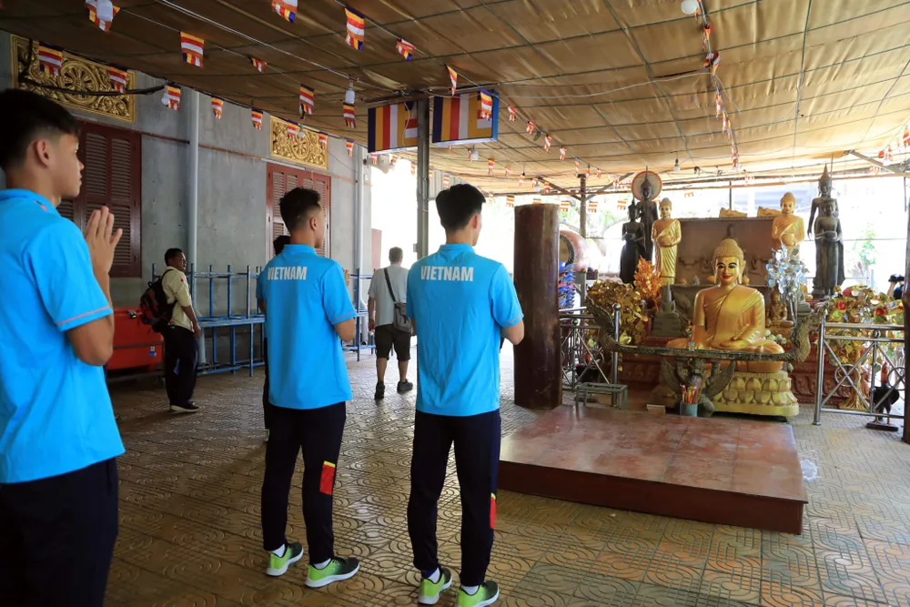 U22 Việt Nam tĩnh tâm ở chùa Campuchia trước khi dự SEA Games
