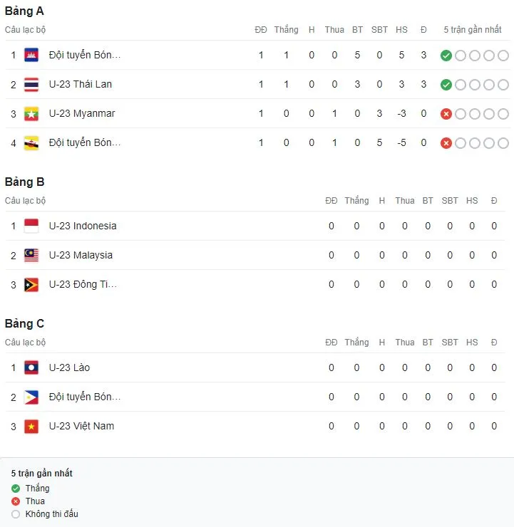 Lịch thi đấu AFF U23 |
