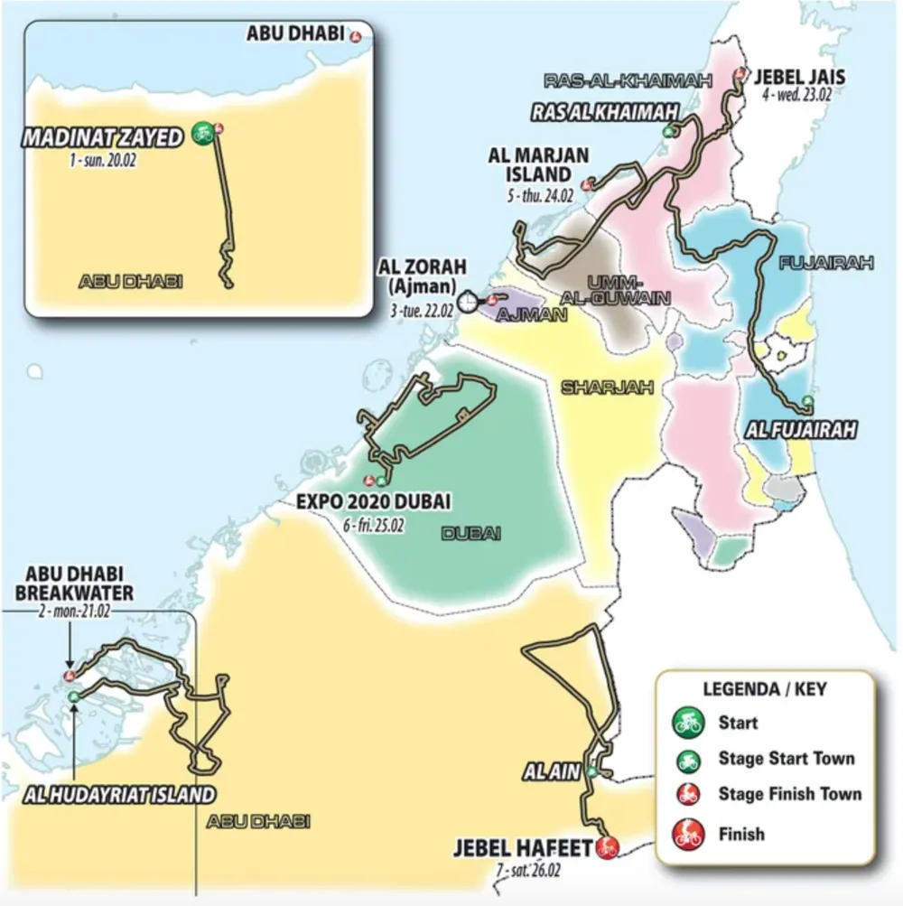 Cuộc đua WorldTour đường trường nhiều chặng duy nhất ở khu vực Trung Đông mỗi năm đã xác nhận diễn ra từ ngày 20 đến 26-2 bất chấp làn sóng biến chủng Omicron đang hoành hành khiến một số cuộc đua đầu mùa khác phải hoãn hoặc huỷ.