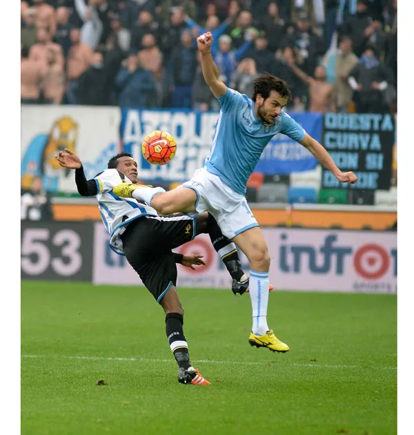 Andrade Edenilson (phải, Udinese) cản phá Marco Parolo (Lazio).