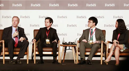 Từ trái sang phải: Phiên thảo luận giữa ông Ted Osius, Đại sứ Mỹ tại Việt Nam, và các gương mặt 30 Under 30 của Forbes Việt Nam (Nguyễn Trung Tín, CEO Trung Thủy Group; Lê Quang Liêm, đại kiện tướng cờ vua; Ngô Thùy Ngọc Tú, đồng sáng lập Yola). Ảnh: Forbes Việt Nam