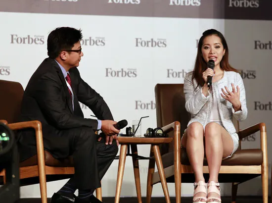 Cô Michelle Phan chia sẻ với ông Nguyễn Bảo Hoàng về quá trình khởi nghiệp