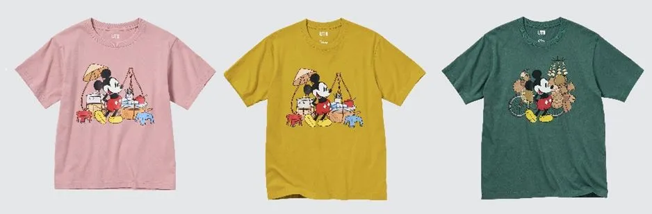 Từ dáng đứng đặc trưng của Mickey, một trong những nhân vật biểu tượng của văn hóa toàn cầu, UNIQLO đã kết hợp cùng đội ngũ sáng tạo tại Disney để mang đến các mẫu họa tiết tái hiện những hình ảnh quen thuộc, độc đáo gắn liền với văn hóa đường phố Việt Nam như nón lá, đòn gánh tre, xe đạp hay các sản phẩm thủ công mây tre đan, tiêu biểu cho nghệ thuật thủ công lâu đời tại Việt Nam.