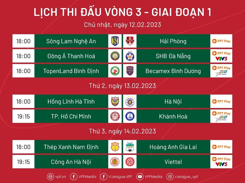 Vòng 3 V-League 2023 còn có cuộc so tài đáng xem diễn ra trên sân Hàng Đẫy giữa Công an Hà Nội và Viettel. Đội Công an Hà Nội đã lộ những hạn chế về sự thiếu đồng bộ giữa một khối gồm nhiều ngôi sao đã bị các cầu thủ Hà Nội FC khai thác và đánh bại ở vòng 2. Sang vòng này, Công an Hà Nội sẽ gặp cựu vương Viettel và liệu họ có cải thiện được tình thế? Thực tế Viettel hiện tại không còn mạnh so với đội hình đã từng vô địch V-League 2020, nên hy vọng giành 3 điểm khá rộng với Công an Hà Nội. Trong khi đó đội Nam Định có nhiều hy vọng tiếp tục bảo vệ ngôi đầu bảng khi thi đấu trên sân nhà gặp HA.GL.
