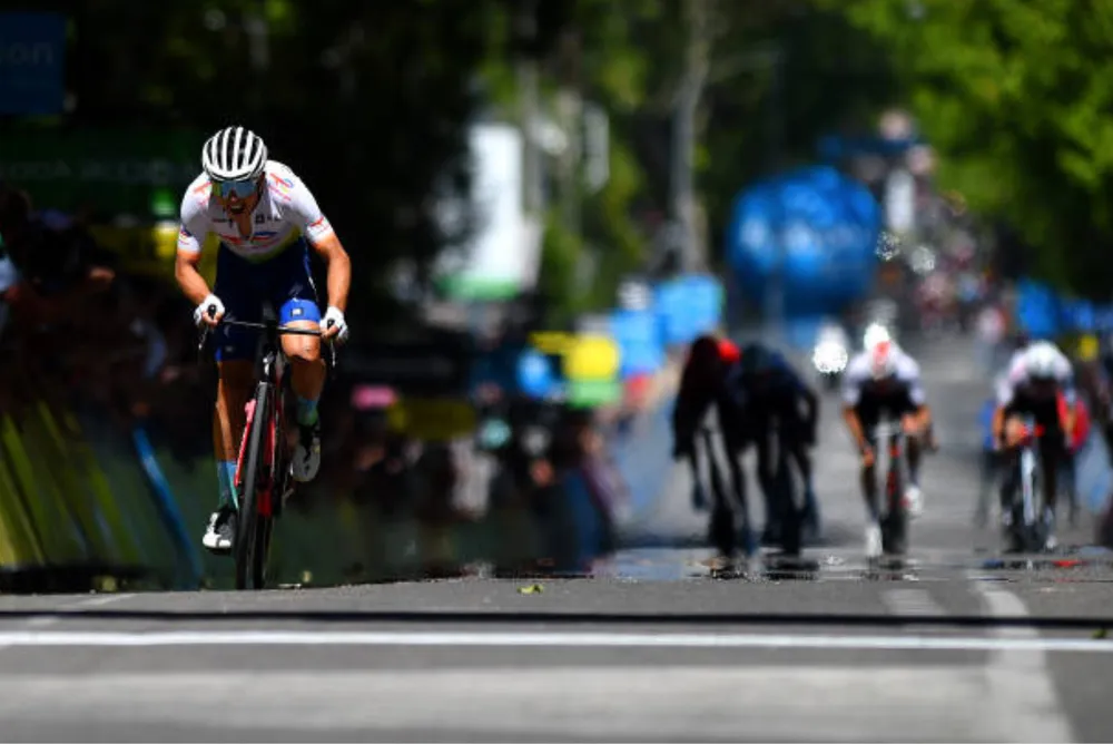 Nhờ vậy, 6 tay đua đi đầu đã cùng nhau lao về đích. Nhưng bất ngờ, khi cách đích hơn 1km, Valentin Ferron (TotalEnergies) từ phía sau nhóm đi đầu lao vút lên như mũi tên khiến các đối thủ giật mình. Một cuộc rượt đuổi nghẹt thở đã diễn ra nhưng Valentin Ferron đã thành công ung dung một mình cán mức trước tiên với thời gian 4 giờ 22 phút 17 giây, hơn 3 giây so với 5 đối thủ tiếp theo.