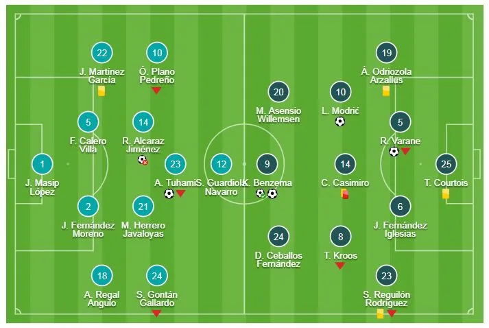 Real Madrid: Varane 34'; Benzema (pen) 51', 59'; Modric 85'