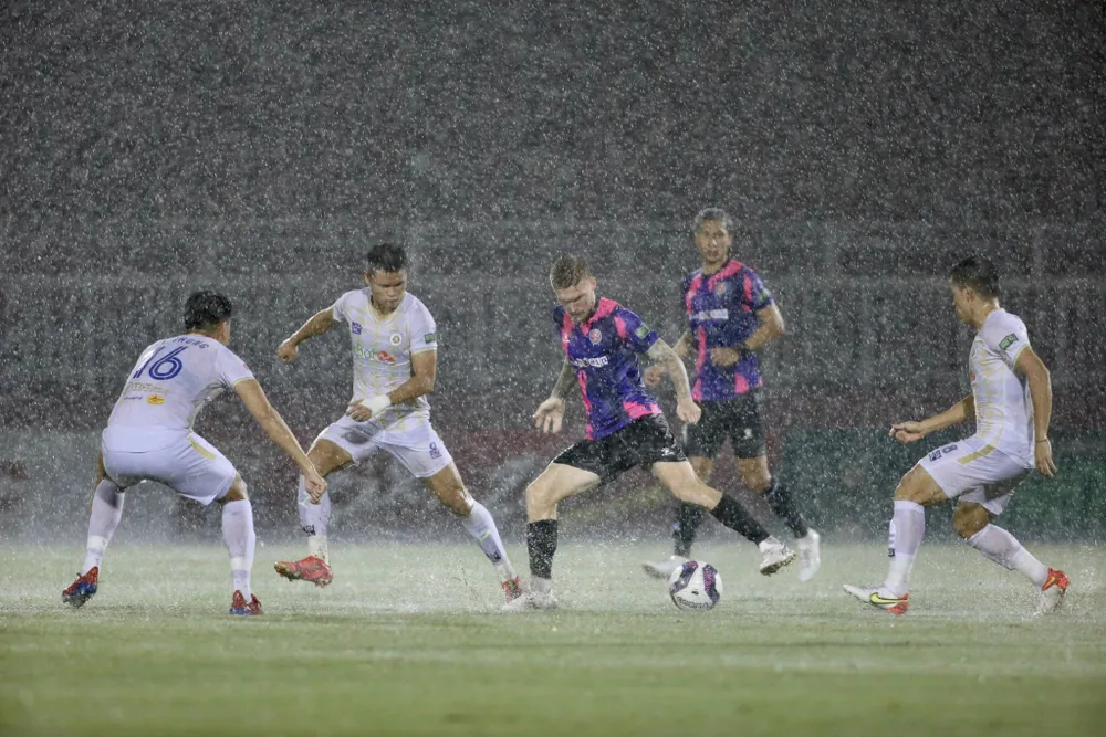 Cơn mưa nặng hạt từ đầu trận đã làm ảnh hưởng đến lối chơi của hai đội, nhất là lối đá ngắn, sệt của đội khách không thể vận dụng được trên mặt sân sủng nước. Trước tình hình đó, đội khách chuyển sang đá bóng dài vượt tuyến, nhưng điều kiện thời tiết cùng mặt sân như trên đã trở thành "bạn đồng hành" cùng CLB Sài Gòn.