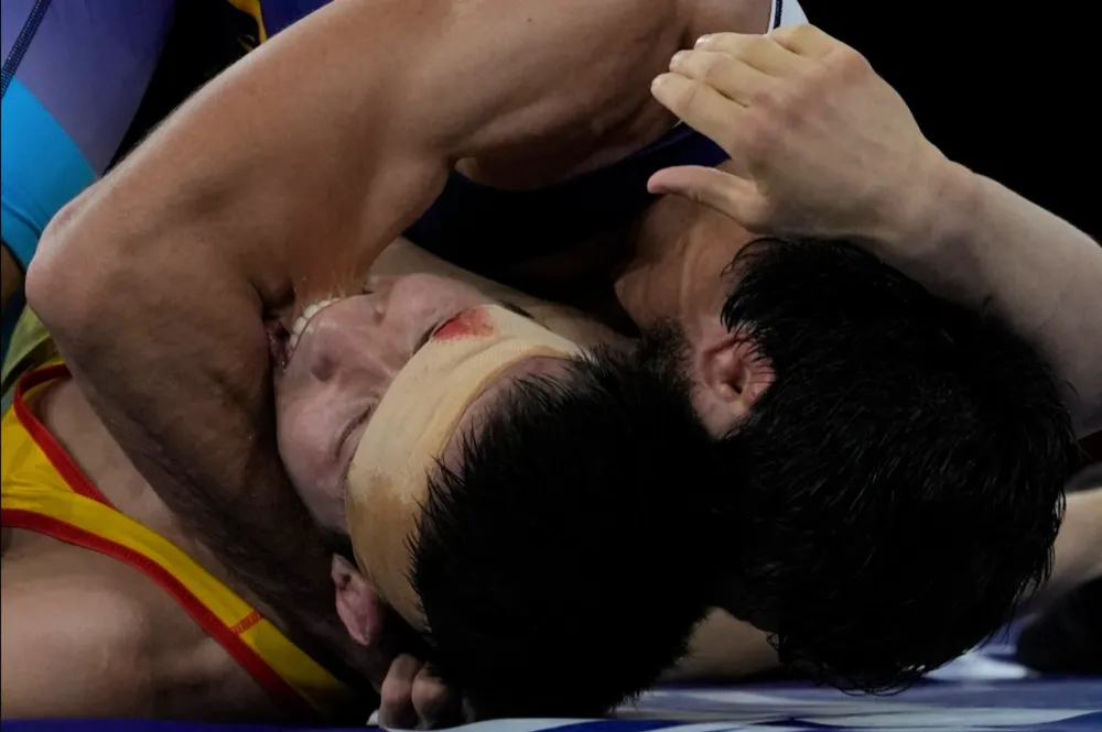 Sau một hồi cố vùng vẫy tìm cơ hội phá đòn đè của đối thủ không thành, Nurislam Sanayev cắn luôn một cái thật mạnh vào tay Ravi Dahiya. Cú cắn mạnh đến mức đã để lại dấu răng rõ ràng và in sâu trên tay đô vật Ấn Độ. Tuy nhiên, Ravi Dahiya đã bất chấp đau đớn để khoá chặt đối thủ và giành chiến thắng một cách xứng đáng.