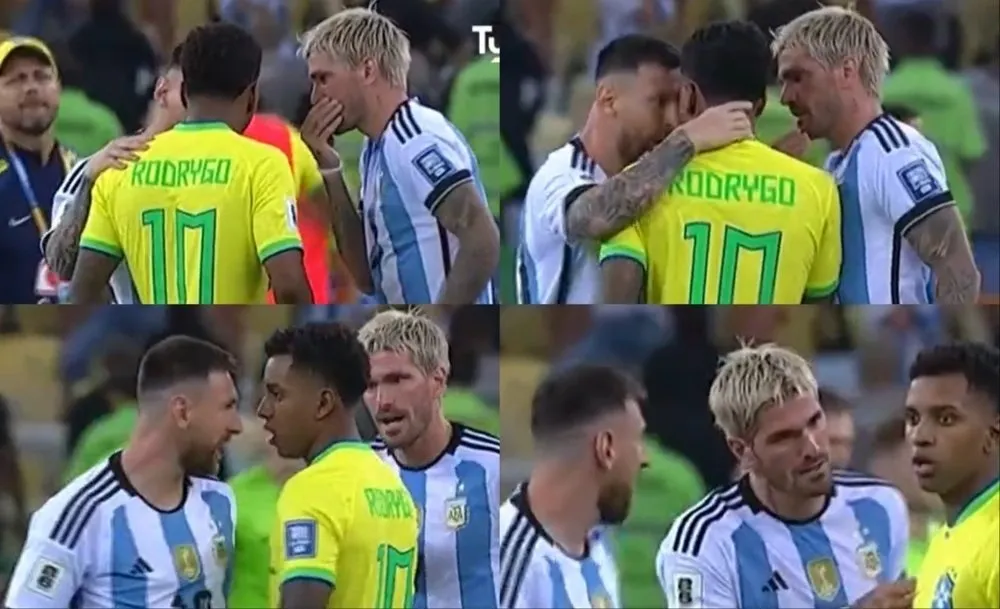 Trận đấu đã bị đình hoãn đến 27 phút. Đó là thời điểm tiền đạo trẻ của Real Madrid và tuyển Brazil chạy đến hét lớn vào tai đội trưởng Argentina. Rodrygo Goes đã khiến đối thủ phẫn nộ khi nói rằng Messi và đồng đội là "những kẻ hèn nhát" vì đã trì hoãn trận đấu. Ngôi sao Inter Miami đã tiếp cận cầu thủ người Brazil cùng với Rodrigo de Paul để túm gáy chú nhóc và hét vào mặt anh ta rằng: "Chúng ta là nhà vô địch thế giới, tại sao chúng ta lại hèn nhát?”. Cựu cầu thủ PSG đưa tay bịt miệng để ống kính không thể hiểu được anh đang nói gì. Nhưng câu nói này đã được truyền thông Argentina công khai qua một góc quay trực diện Messi.