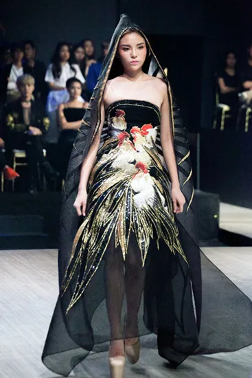 ° Hoa hậu Kỳ Duyên (ảnh) giữ vị trí vedette trong bộ sưu tập của Võ Công Khanh trong Tuần lễ thời trang Vietnam Designer Fashion Week Thu Đông 2016 với chủ đề tôn vinh người phụ nữ Golden Women - Phụ nữ là vàng. Trong đêm mở màn, Kỳ Duyên gây bất ngờ trong bộ trang phục được trang trí những chú gà trống ấn tượng, tự tin khoe vòng 1 sexy.