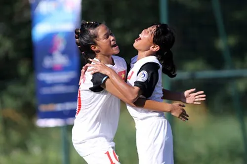 Niềm vui lọt vào chung kết của 2 nữ tuyển thủ Việt Nam. Ảnh: VFF