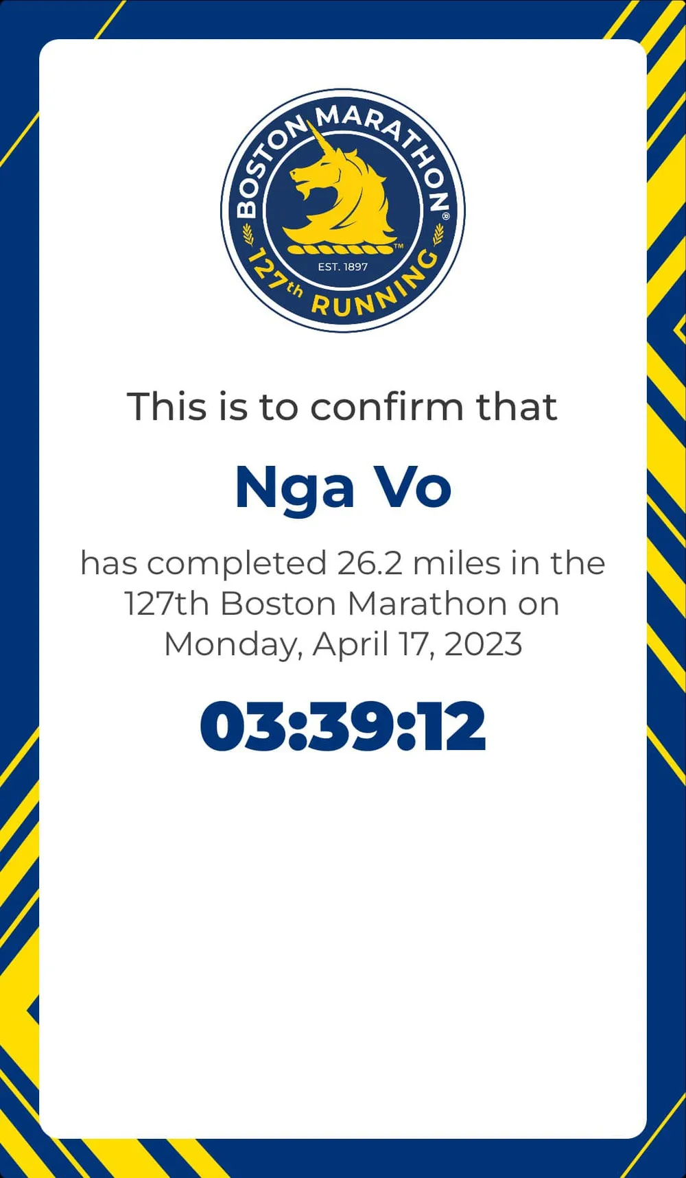 Với sự hỗ trợ từ adidas Việt Nam, adidas Runners Saigon, Nga Võ có vinh dự cầm trong tay tấm BIB để tham gia Boston Marathon. Thông tin cô cùng với 9 runner Việt Nam khác sẽ tham gia Boston Marathon 2023, đúng ngay kỷ niệm 10 năm vụ đánh bom khủng bố giải chạy này, gây hiệu ứng tích cực khắp cộng đồng runner Việt Nam và thậm chí, khiến các cổ động viên, người hâm mộ cảm thấy phấn khích đến nổi da gà. VĐV Việt Nam ở giải chạy marathon lâu đời nhất thế giới - còn điều gì tuyệt vời hơn nữa???