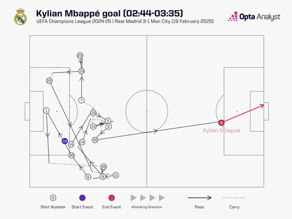 Anh hiện có 32 lần tham gia bàn thắng trong mùa giải này, dù còn cách xa so với 54 lần trong mùa giải cuối cùng tại Paris Saint-Germain và kỷ lục 60 lần trong mùa 2021-22, nhưng đó vẫn là một con số ấn tượng đối với một cầu thủ trong mùa giải đầu tiên tại câu lạc bộ.